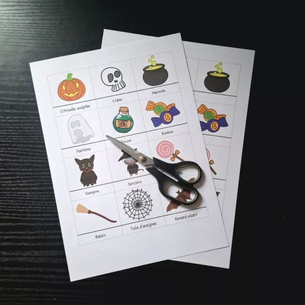 Memory Halloween à imprimer : un jeu de paires parfaites à découper pour travailler la mémoire et la concentration.