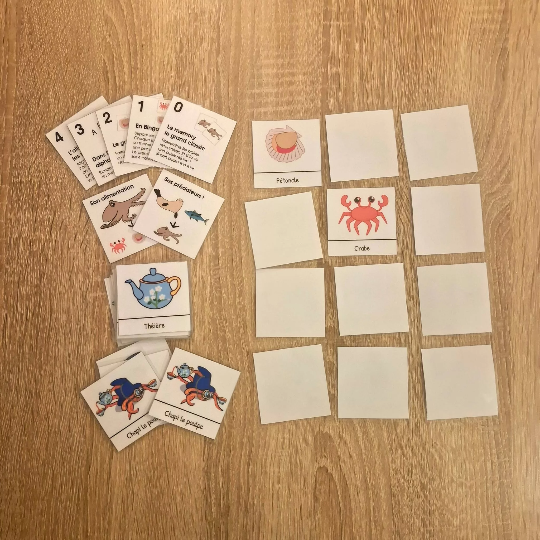 ✅ Un memory spécial “journée du poulpe”(paire parfaite) – 12 paires à retrouver + 4 variantes de jeu pour varier les plaisirs.