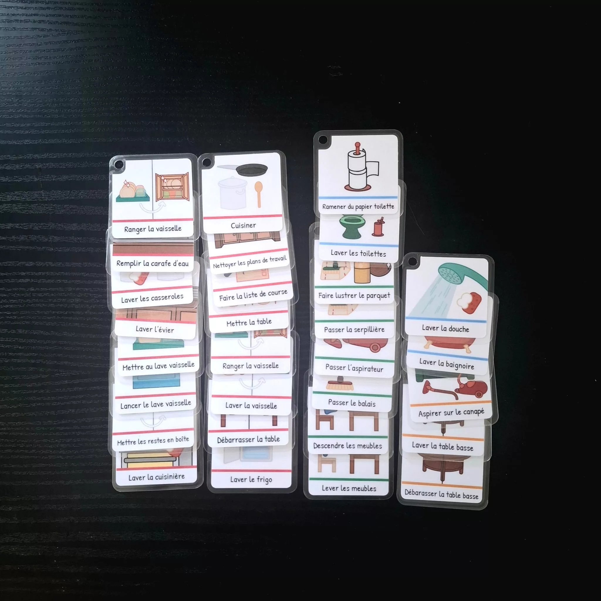 - Autonomie : Ce système encourage l’indépendance en permettant à chacun de suivre les tâches à accomplir de manière visuelle. Les enfants et les adultes peuvent ainsi développer une routine de cuisine autonome et efficace.