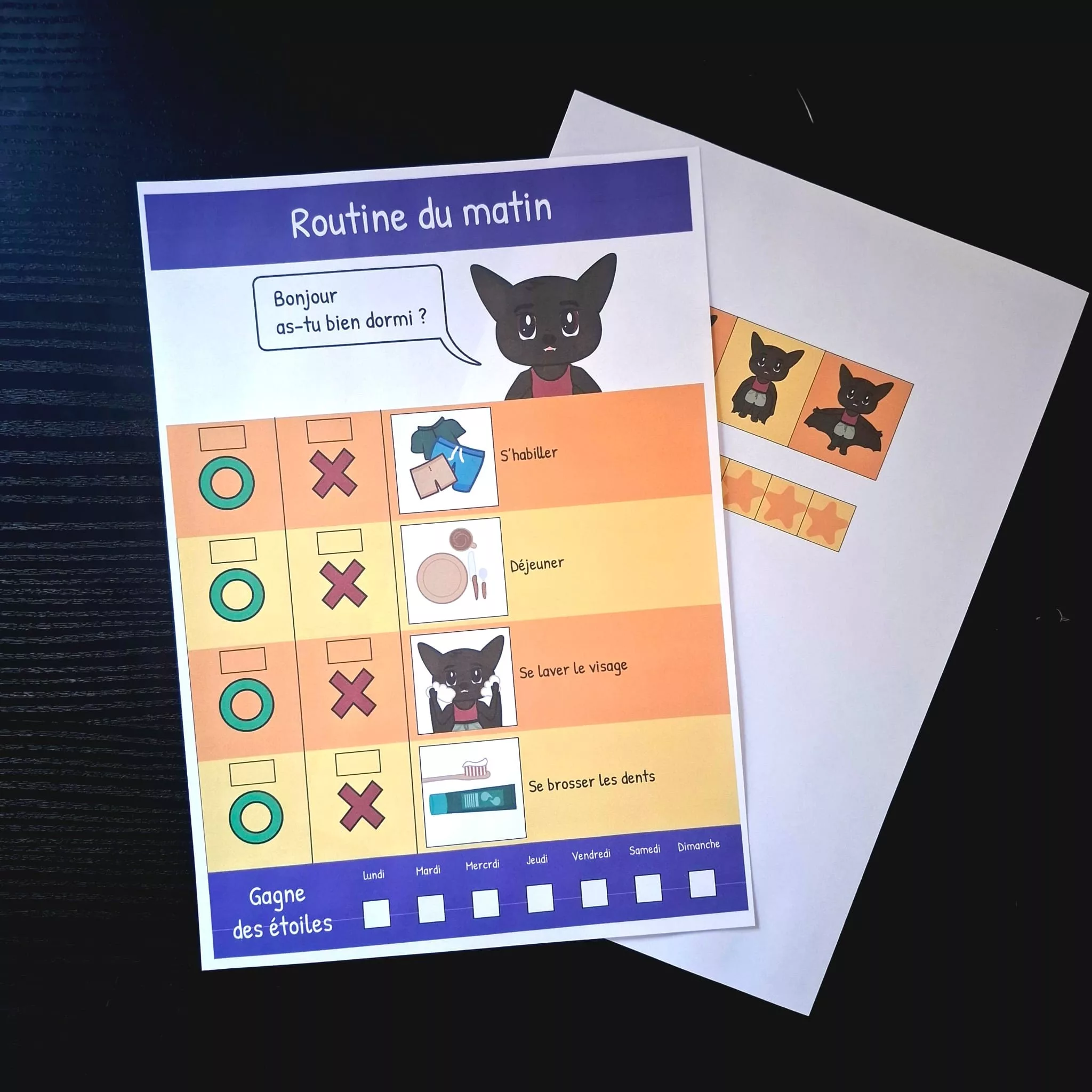 Facilitez les matins en famille grâce à la Routine du matin à imprimer, la petite chauve-souris malicieuse qui aide les enfants à devenir autonomes tout en s’amusant !